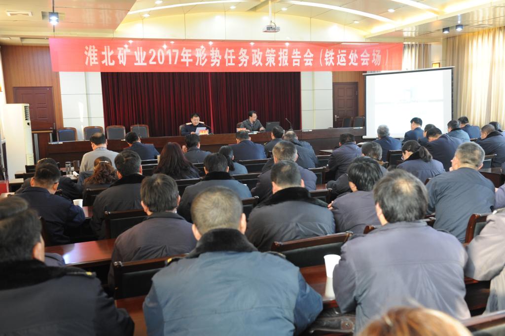 1月17日下午,淮北礦業(yè)2017年形勢(shì)任務(wù)政策宣講團(tuán)來(lái)到鐵運(yùn)處,為該處干部職工作形勢(shì)任務(wù)解讀和淮北礦業(yè)2017年職代會(huì)精神宣貫。該處副總以上領(lǐng)導(dǎo)、機(jī)關(guān)副科以上干部、基層班組長(zhǎng)100余人聆聽(tīng)了報(bào)告。