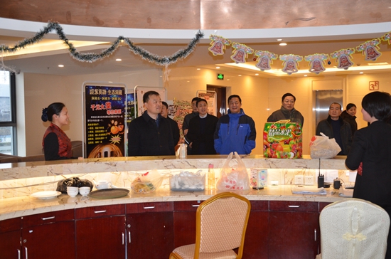 該公司領(lǐng)導(dǎo)在會(huì)議中心吧臺(tái)進(jìn)行節(jié)日慰問