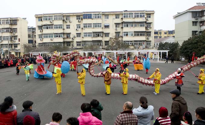 春節(jié)期間,楊莊礦在工人村體育廣場(chǎng)開(kāi)展了舞龍、舞獅、劃旱船、騎毛驢、推花車(chē)、豬八戒背媳婦、斗雞等豐富多彩的活動(dòng),使礦區(qū)職工享受了一場(chǎng)別具特色的節(jié)日文化大餐。
