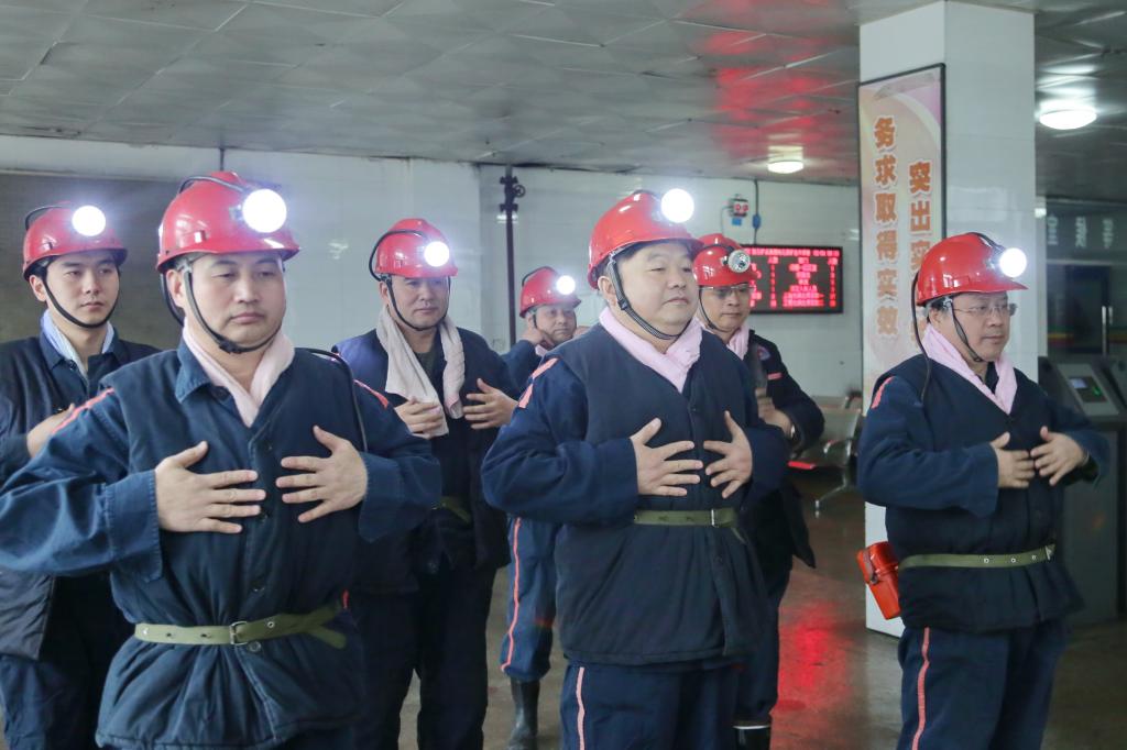一到礦,周衛(wèi)金簡單與該礦領導班子互道新年祝福,在礦長張曉更、安監(jiān)處長黃正練等人的陪同下深入井下8202綜采工作面檢查指導工作。