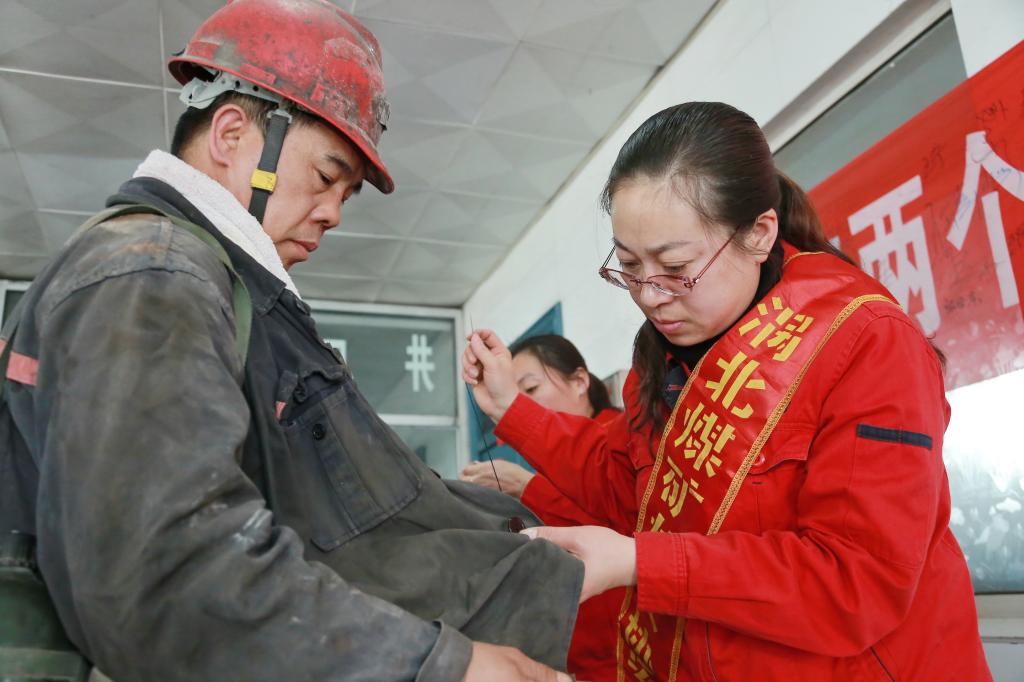2月14日,渦北礦工會組織女職工協(xié)安員到井口開展“為了心愛的她”主題安全宣教活動,通過送帶有“平安”的愛心標(biāo)貼、縫補衣服等方式,叮囑職工師傅為了家庭幸福牢記安全。圖為協(xié)安員與一線職工擺成飽含深意“心”字合影留念。