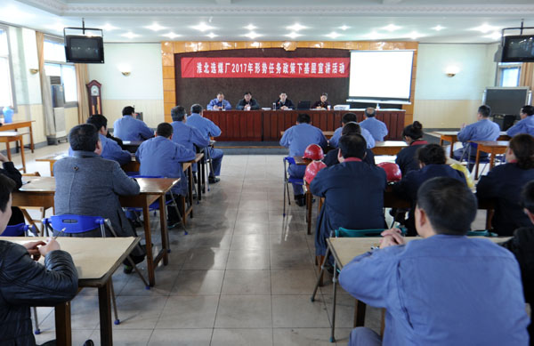該廠將形勢任務(wù)教育作為統(tǒng)一思想、凝聚人心、助推發(fā)展的“金鑰匙”,按照“務(wù)實(shí)、跟進(jìn)、貼緊”的工作主基調(diào),把企業(yè)發(fā)展政策與職工自身利益結(jié)合起來,把企業(yè)轉(zhuǎn)型發(fā)展與職工個(gè)人理想以及自我價(jià)值的實(shí)現(xiàn)結(jié)合起來,不斷增強(qiáng)形勢教育的目的性、針對(duì)性、實(shí)效性。年初,便通過基層聯(lián)系點(diǎn)走訪、專題座談?wù){(diào)研等途徑,掌握基層所思、所盼、所難、所需,做到了職工思想清、基層困難清、生產(chǎn)難點(diǎn)清,從而確定了形勢任務(wù)教育主題,明確學(xué)習(xí)教育重點(diǎn),淮北礦業(yè)和廠兩級(jí)工作會(huì)召開后,迅速對(duì)宣教工作進(jìn)行部署,建立了廠、車間、班組三級(jí)宣傳網(wǎng)絡(luò),以基層為主,以黨員干部、班組長為重點(diǎn),采取上下結(jié)合、點(diǎn)面結(jié)合、集中與分散相結(jié)合的方法,形成了廠領(lǐng)導(dǎo)、車間負(fù)責(zé)人、班段長層層宣講的格局。組成宣講團(tuán)深入生產(chǎn)區(qū),開展了7場宣講會(huì),利用多媒體課件,圖文并茂、提綱挈領(lǐng)地給干部職工宣傳灌輸。從當(dāng)前國際國內(nèi)煤炭市場形勢到淮北礦業(yè)加快轉(zhuǎn)型,從守住安全穩(wěn)定底線到強(qiáng)化生產(chǎn)經(jīng)營管控,從推進(jìn)改革創(chuàng)新到推向質(zhì)量時(shí)代,把當(dāng)前面對(duì)的嚴(yán)峻形勢與任務(wù)目標(biāo)一一查擺,有針對(duì)性地解答職工群眾熱點(diǎn)、難點(diǎn)、疑點(diǎn)問題,把任務(wù)講明,把思路理清,讓職工既感到壓力,又堅(jiān)定了信心。