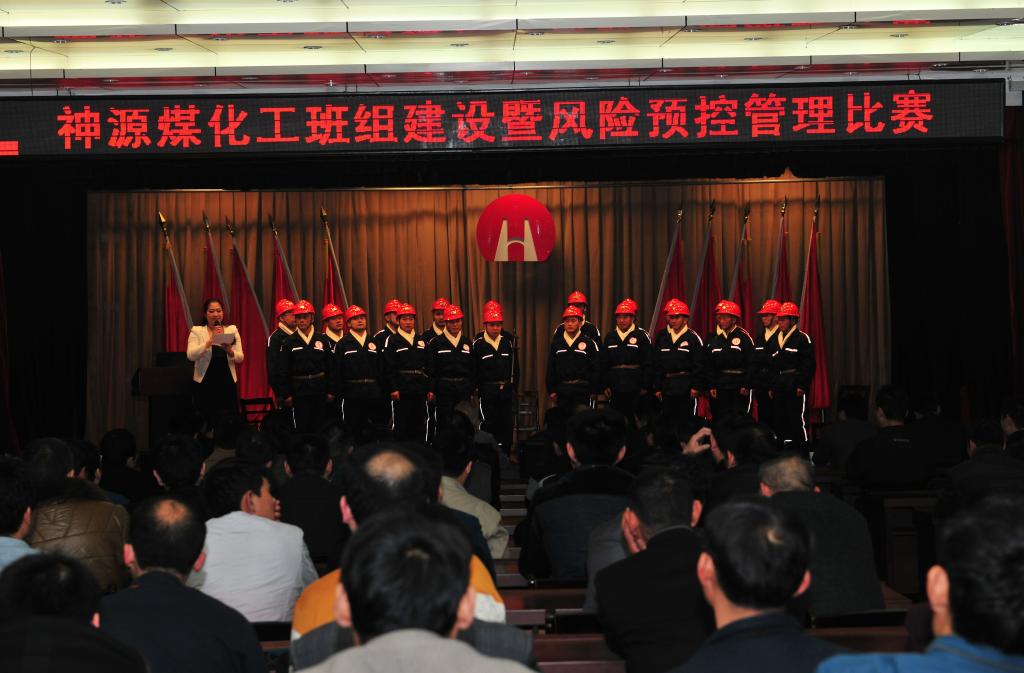 “清理現(xiàn)場(chǎng)、交班匯報(bào)時(shí)存在風(fēng)險(xiǎn)為滑倒摔傷,控制措施一是班長(zhǎng)全面檢查,二是職能部門檢查、監(jiān)督。匯報(bào)完畢,請(qǐng)指示!”來自防突區(qū)的職工劉總結(jié)聲音響亮、回答流利,展示出良好的精神面貌,贏得臺(tái)下觀眾熱烈掌聲。4月6日上午,可以容納四百余人的職教會(huì)議廳座無虛席,神源煤化工班組建設(shè)暨風(fēng)險(xiǎn)預(yù)控管理大賽第一輪第二場(chǎng)比賽在此如期“開戰(zhàn)”,由通風(fēng)區(qū)注漿隊(duì)對(duì)陣防突區(qū)鉆機(jī)隊(duì)。