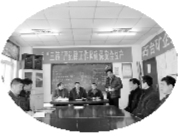 | 唐延杰(右一)每天都會(huì)在編前會(huì)上向值班人員反復(fù)“嘮叨”,叮囑職工遵守規(guī)章,認(rèn)真作業(yè)。 |