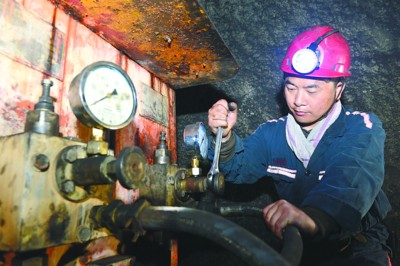 4月26日,煤機工王忠才在百米井下檢修煤機等設備。