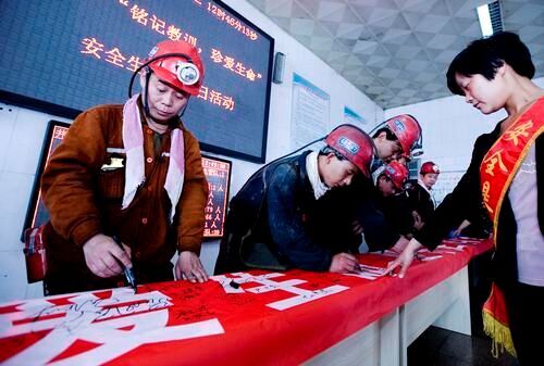 5月13日是安徽省安全生產(chǎn)警示教育日。當(dāng)日,淮北礦業(yè)各廠礦開展了以銘記2003年“5.13”特大瓦斯爆炸事故教訓(xùn)、珍愛生命為主題內(nèi)容的安全生產(chǎn)警示教育活動(dòng),活動(dòng)內(nèi)容包括安全宣誓、安全簽名、觀看事故案例專題片等。圖為楊莊礦協(xié)安員正組織中班下井職工進(jìn)行安全承諾簽名。