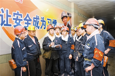 安徽淮北礦業(yè)集團(tuán)朱仙莊礦不斷充實(shí)群安網(wǎng)員隊(duì)伍,定期組織群安網(wǎng)員上崗互查,保障安全生產(chǎn)。圖為群安網(wǎng)員準(zhǔn)備下井排查隱患。王道玉 攝