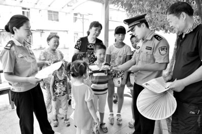 7月6日,淮北市公安局朔里派出所民警在向社區(qū)居民解讀治安防范宣傳材料。暑假來臨,淮北礦業(yè)集團(tuán)朔里礦業(yè)針對老礦區(qū)留守兒童多、空巢老人多的情況,聯(lián)合駐地派出所深入社區(qū)宣講消防安全、居家安全、出行安全、自我保護(hù)、應(yīng)急呼救等知識,增強(qiáng)留守兒童、老人的自防自救能力和安全防范意識。 喬時(shí)慶 周勇 攝