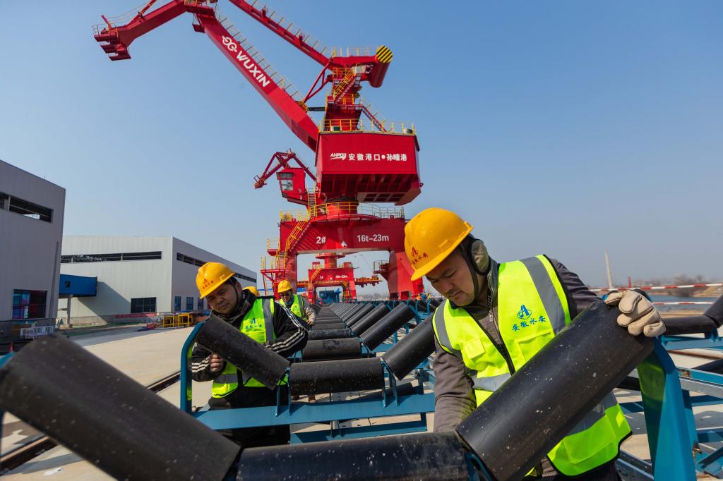 孫疃碼頭工程由安徽省港航集團(tuán)、淮北礦業(yè)集團(tuán)和濉溪縣政府聯(lián)合建設(shè)。項(xiàng)目自2021年7月份建設(shè)以來,建設(shè)單位方克服疫情等各種不利因素影響,不斷優(yōu)化施工方案,執(zhí)行掛圖作戰(zhàn),搶抓工期節(jié)點(diǎn),有效工期10個(gè)半月的時(shí)間,完成整體工程進(jìn)度的85%,創(chuàng)造了安徽省內(nèi)河航運(yùn)港口建設(shè)新速度。目前,碼頭工程和配套鐵路專用線施工已近尾聲,預(yù)計(jì)6月底實(shí)現(xiàn)開港運(yùn)營。