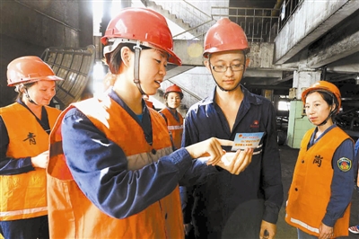 近年來,安徽淮北礦業(yè)集團(tuán)臨渙選煤廠由7名女青年安全監(jiān)督崗員組成的女子青崗隊,在“三違”幫教、隱患協(xié)查、心理疏導(dǎo)等方面發(fā)揮了重要作用。圖為女子青崗隊在查隱患。劉小礦 攝