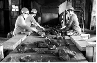 在淮北礦業(yè)集團袁店二礦毛煤篩分車間,職工把煤炭從煤矸石中分揀出來。 黃世鵬 攝 |