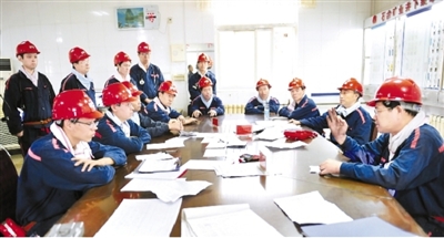 安徽淮北礦業(yè)集團(tuán)朔石礦業(yè)積極推進(jìn)“一礦兩井”升級(jí)版安全質(zhì)量標(biāo)準(zhǔn)化觀(guān)摩交流活動(dòng)。圖為西部井采掘生產(chǎn)系統(tǒng)人員近日在東部井下井后交流觀(guān)摩感受。喬時(shí)慶 攝