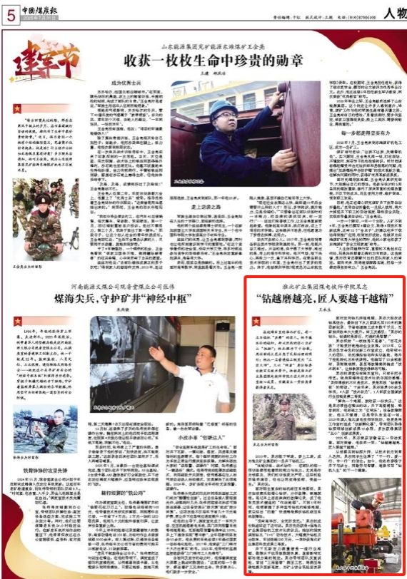 “沒有高學(xué)歷,全憑好技藝?!标街镜某砷L軌跡印證了這句話。杲志先后獲得4屆淮北礦業(yè)集團(tuán)鉆機(jī)工技術(shù)比武狀元;獨(dú)創(chuàng)的強(qiáng)突煤層鉆孔“3+3”防治技術(shù),大幅提升鉆機(jī)月臺效率,年創(chuàng)效超200萬元,一舉斬獲淮北礦業(yè)集團(tuán)科技成果三等獎。