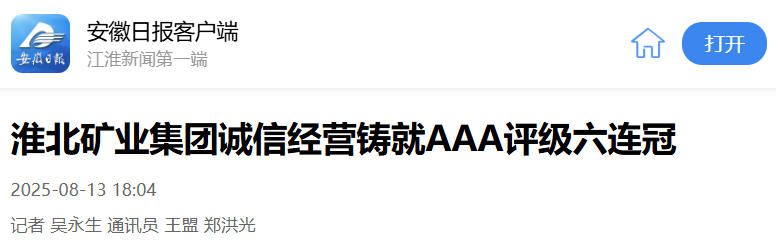 8月12日,安徽淮北礦業(yè)集團以優(yōu)異成績通過中國煤炭工業(yè)協(xié)會信用等級現(xiàn)場評價,信用評價級別為AAA。至此,該集團已連續(xù)6屆獲評煤炭行業(yè)“AAA級信用企業(yè)”。