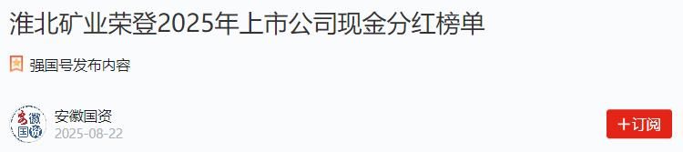 近日,中國上市公司協(xié)會發(fā)布2025年上市公司現金分紅榜單,淮北礦業(yè)成功入選,名列股息率榜單第31位,安徽省入選股息率榜單企業(yè)第2位,彰顯出市場對淮北礦業(yè)在股東回報方面所做努力的充分認可。