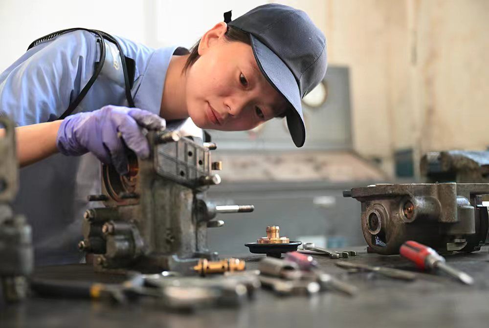 工作臺上,大小不一、形態(tài)各異的閥件靜靜陳列。與這些沉重的“鐵疙瘩”打交道是項體力活,最重的閥件近20斤,工作中搬抬是常態(tài)。然而,女檢修工總能將各類配件有條不紊地迅速擺放歸位。在她們眼中,閥件檢修如同醫(yī)生診治病人,必須做到“眼到、手到、心到”,這不僅關乎安全,也關乎每一個修復部件的長久可靠。
