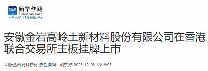 12月3日上午,安徽金巖高嶺土新材料股份有限公司(證券簡稱“金巖高嶺新材”,股份代號:02693.HK)在香港聯(lián)合交易所主板成功掛牌上市。此次登陸國際資本市場,不僅是該公司深化國有企業(yè)改革、提升治理效能的重要里程碑,更標志著其在高質(zhì)量發(fā)展征程中邁出了關(guān)鍵一步。作為控股股東,淮北礦業(yè)集團公司至此已擁有3家上市子公司,而金巖高嶺新材則成為集團旗下首家于港交所掛牌的企業(yè),具有特殊的戰(zhàn)略意義。