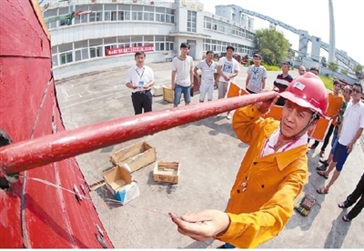 為營造學(xué)技術(shù)、練技能的良好氛圍,安徽淮北礦業(yè)渦北礦以各種勞動(dòng)競賽活動(dòng)為載體,鼓勵(lì)職工多學(xué)習(xí)新技術(shù),爭做“金藍(lán)領(lǐng)”。圖為7月26日,該礦第五屆職工技術(shù)比武爆破工實(shí)操比武現(xiàn)場。陳彪 攝