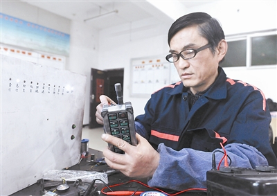 老張?jiān)诠ぷ魇揖S修采煤機(jī)遙控器