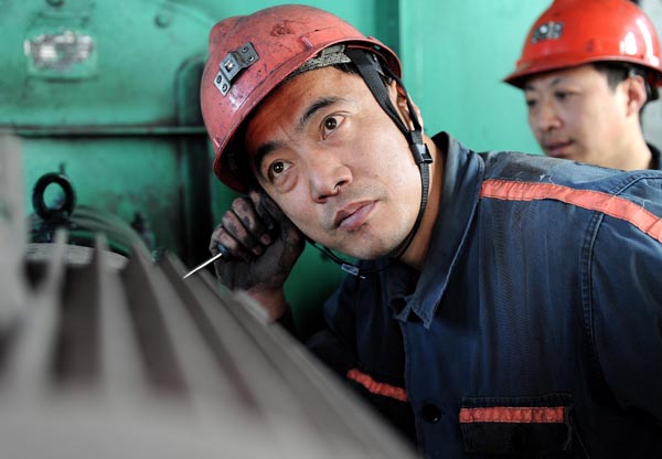 淮北礦業(yè)集團(tuán)公司朱仙莊煤礦保運一區(qū)保運隊隊長高云保,自參加工作20多年以來,他憑著干一行鉆一行的勁頭,練就了一身維修礦井提升設(shè)備的本領(lǐng),成為一名機(jī)電高級技師。他對每臺設(shè)備的習(xí)性了如指掌,只要設(shè)備一有故障,一“聽”就能找到了“癥結(jié)”,被礦工們稱為“聽診專家”。他曾獲得集團(tuán)公司“勞?!薄ⅰ拔搴寐毠ぁ?,“礦標(biāo)兵”、 “安全明星”等多項榮譽(yù)稱號。今年,他又被礦評為礦標(biāo)兵。圖為2017年2月16日,他正在“聽診”檢查設(shè)備。