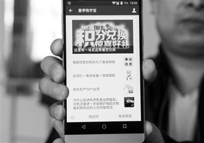 ▼近日,安徽淮北礦業(yè)集團童亭礦積極探索安全培訓(xùn)的新途徑、新方法,在手機微信平臺“童亭微學堂”內(nèi)設(shè)立有獎答題環(huán)節(jié),累積相應(yīng)的積分就可以兌換相應(yīng)的獎品,調(diào)動大家參加培訓(xùn)的積極性。