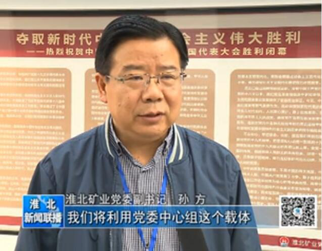 淮北市廣播電臺(tái)《淮北新聞聯(lián)播》同步播發(fā)王忠才宣講黨的十九大精神的視頻新聞,并專題采訪淮北礦業(yè)黨委副書(shū)記孫方。