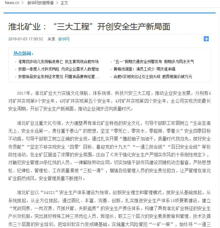 新華網(wǎng)安徽頻道 2018年1月3日