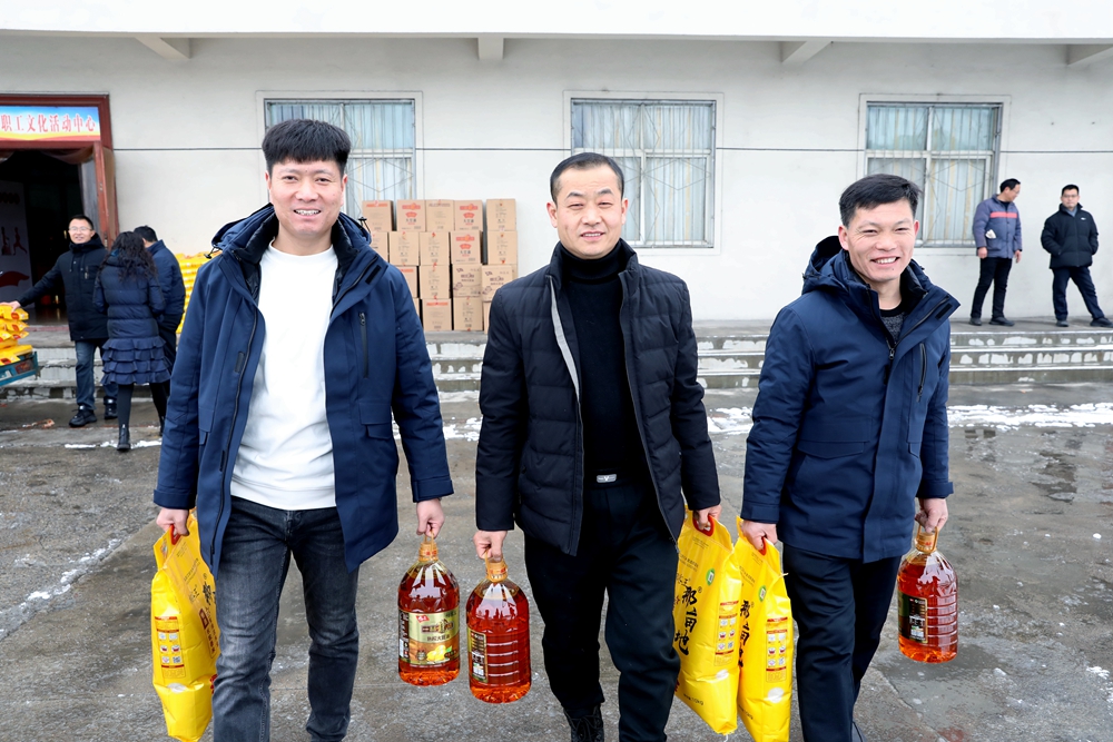 2月5日,大雪過后,童亭礦圖書室前異常繁忙,這里正在發(fā)放“春節(jié)福利”,全礦一千多名在崗職工每人都領(lǐng)到一份米、油、蜜薯、春聯(lián)等。發(fā)放現(xiàn)場,工作人員將滿載祝福的福利物品送到職工手中,大家拿在手里,臉上流露出了幸福的笑容。沉甸甸的福利代表著企業(yè)對廣大職工的濃濃關(guān)愛和滿滿的新年祝福,一直以來,該礦堅持以職工為中心,踐行“童亭一家親”的理念,持續(xù)開展“四季恒溫”送溫暖活動,在進(jìn)一步增強職工凝聚力的同時,提高職工以礦為家的主人翁意識,為推動礦井高質(zhì)量發(fā)展增添前進(jìn)動力。