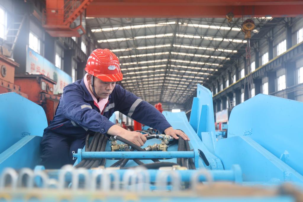 (圖為綜采二區(qū)黨員蒿杰正在對(duì)入井前支架進(jìn)行檢驗(yàn))