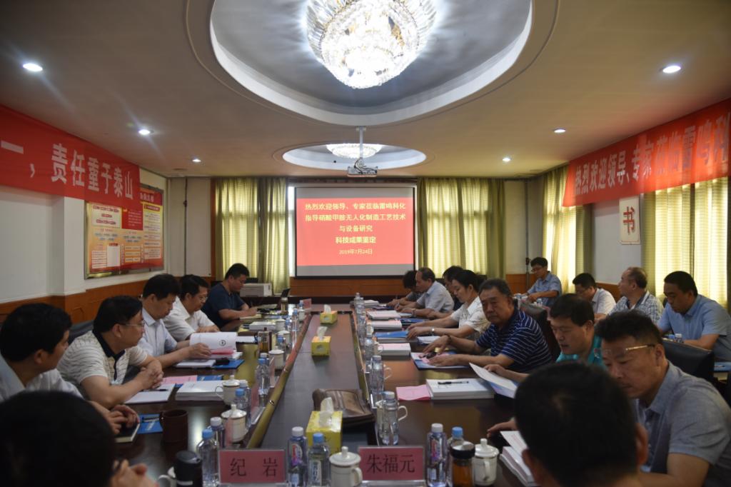 2019年7月24日,工業(yè)和信息化部組織專家在雷鳴科化公司召開水膠炸藥生產(chǎn)線科技成果鑒定會,對雷鳴科化公司與石家莊成功機電有限公司合作研制的“水膠炸藥智能化生產(chǎn)技術及設備”、與北京北礦億博科技有限責任公司合作研制的“硝酸甲胺無人化制造工藝技術與設備”兩項科技成果進行鑒定。“我認為這兩項科技成果已達到國際先進水平?!眳未壕w專家在鑒定會上如是說。