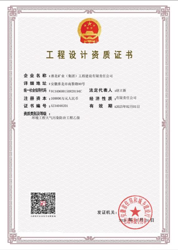 近日,由工程建設公司申報的“環(huán)保工程總承包三級資質(zhì)”、“大氣污染設計乙級資質(zhì)”兩項資質(zhì),先后通過了淮北市住建局和安徽省住建廳的審核,并取得了相關(guān)資質(zhì)證書。同時也成為了安徽省具有大氣污染設計資質(zhì)的16家企業(yè)之一。