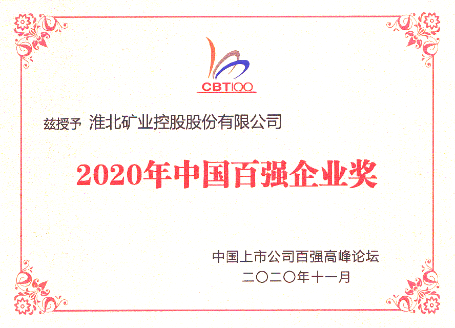 11月28日,“第二十屆中國上市公司百強(qiáng)高峰論壇”在北京舉行,該論壇由中國上市公司百強(qiáng)高峰論壇組委會(huì)、華頓經(jīng)濟(jì)研究院主辦。淮北礦業(yè)以優(yōu)異的經(jīng)營業(yè)績和良好的社會(huì)形象,獲評(píng)2020年“中國百強(qiáng)企業(yè)獎(jiǎng)”“中國道德企業(yè)獎(jiǎng)”“中國百強(qiáng)優(yōu)秀董秘獎(jiǎng)”三項(xiàng)大獎(jiǎng)。