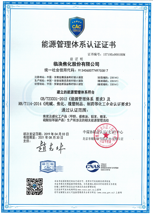 近日,臨渙焦化公司成功獲得中煤協(xié)聯(lián)認(rèn)證(北京)中心頒發(fā)的《能源管理體系認(rèn)證證書(shū)》,標(biāo)志著臨渙焦化公司能源管理體系的建設(shè)取得關(guān)鍵性成果。
