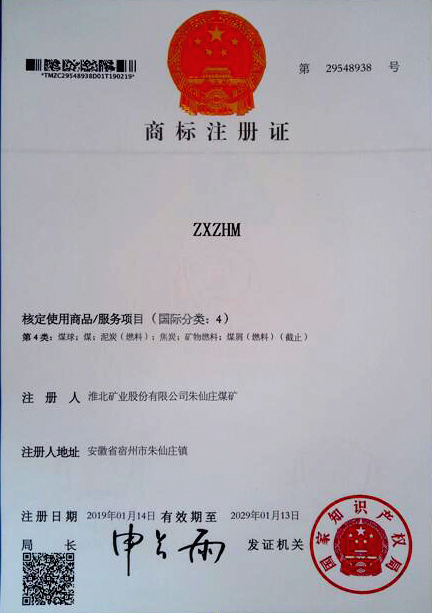 近日,朱仙莊礦煤炭產(chǎn)品“ZXZHM”(朱仙莊混煤)商標(biāo)正式申請(qǐng)注冊(cè)成功,并由國家知識(shí)產(chǎn)權(quán)局頒發(fā)商標(biāo)注冊(cè)證書。
