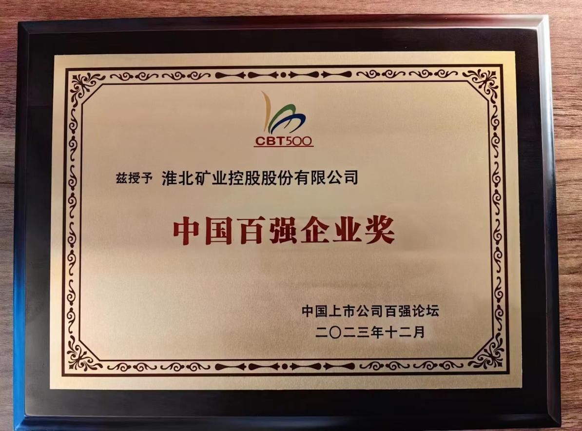 淮北礦業(yè)榮獲中國百強(qiáng)企業(yè)獎榮譽(yù)稱號